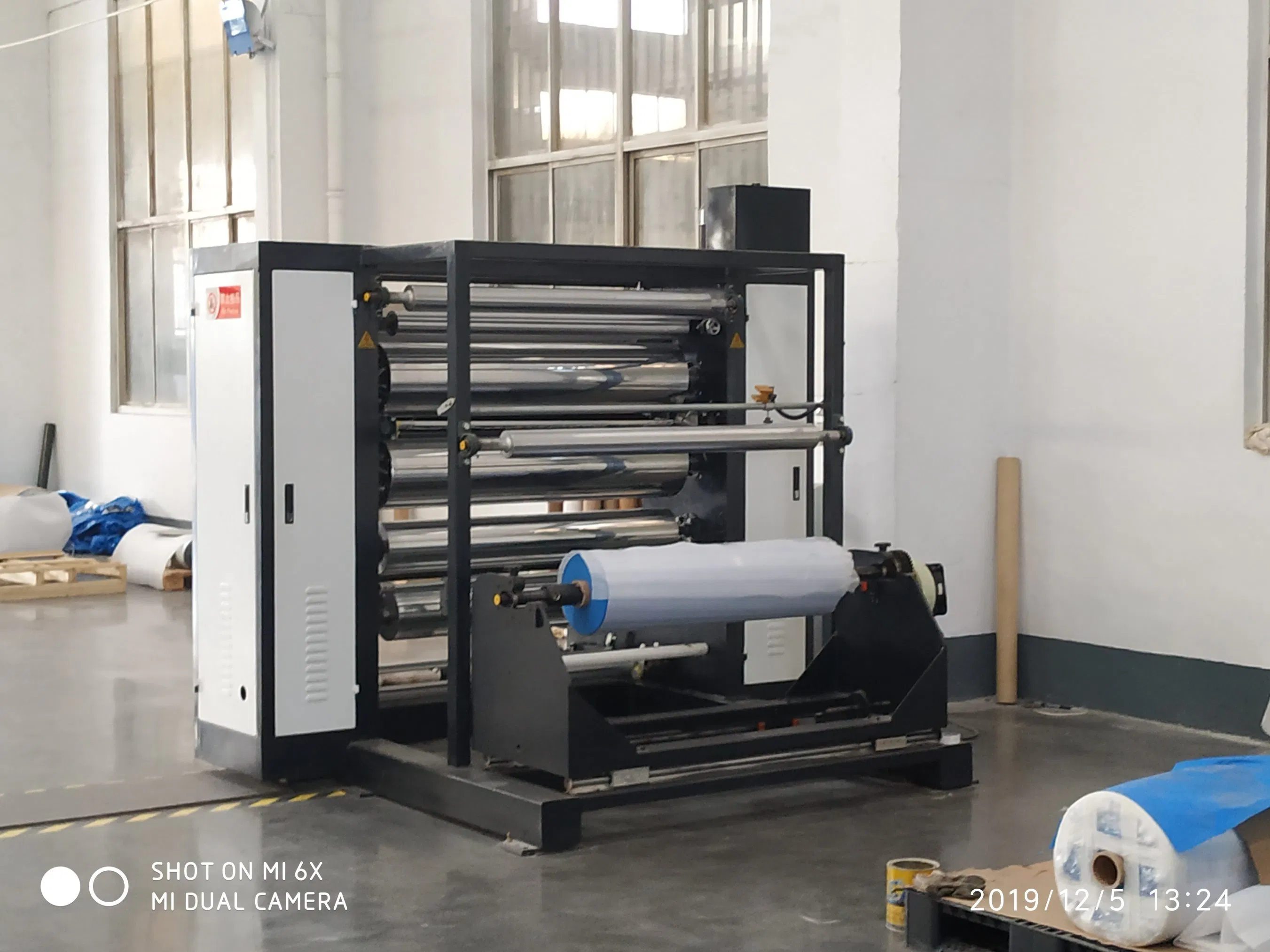 Super long material storage rack, realize rewinding without stopping. High-power seam welding machine, shear machine, alkali washing tank, clean water tank. It caused rapid aging of products because of large heat loss and poor thermal stability of oven. This machine adopts no oven heating which low heat loss, strong stability, fast production speed, reliable fastness. The whole production line of this machine is automatic constant tension, saving manpower and time. Double-side film-lamination at the same time , single - sided embossing, concave embossing are all available.