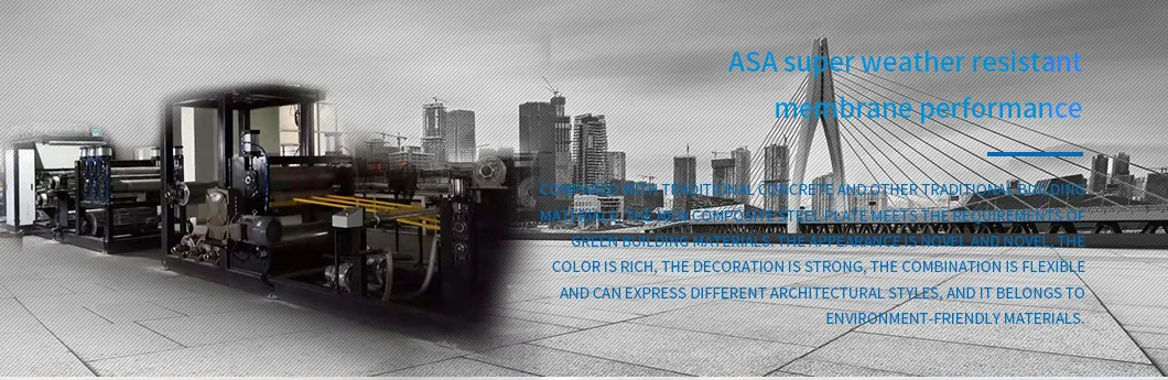 This machine is suitable for composite of color steel coil with PET color aluminum film, pure aluminum film, PVDF, ASA, PVC film (plastic steel roofing tile), stainless steel with color film (home appliances, door plate). Humanized design, advanced technology, this machine with cantilever winding, lifting sports car, alignment device, winding high precision alignment device, save both time and labour.