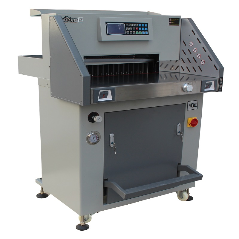 Specifications1.Factory Hydraulic paper cutter2.Max cutting size:490mm3.Min cutting size:30mm4. cutting sicknes :80mm5.CE aprovalProgrammble Hydraulic paper cutterDesign with CE standardpower supply:AC220v(110v),50hz/60hz, 1.5KWNet weight :350kgMachine Dimension:1260*950*820mmPacking size:1160*96......